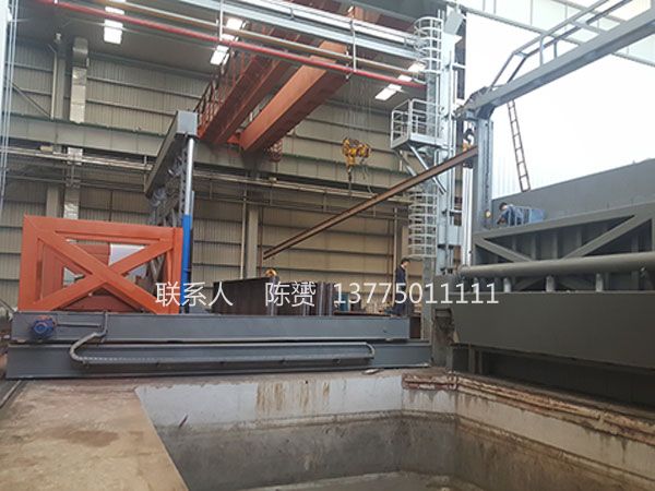 装料筐和进出料车由型钢焊接而成,并进行水平重心调整,上下吊动。本电炉配备料筐及料车以确保用户能及时工作。进料时,料筐装在小车上,拉出及推进,进入炉体下部时,炉门开启而转扬机工作,钩住链条,把装料筐吊入炉内,关闭炉门进行加热。出料时,开启炉门,转扬机动作,把装料筐放入水池进行淬火处理,然后把料筐提出水面放在小车的平面上,链条脱钩,转扬机提升,把小车拉出,进行时效处理。