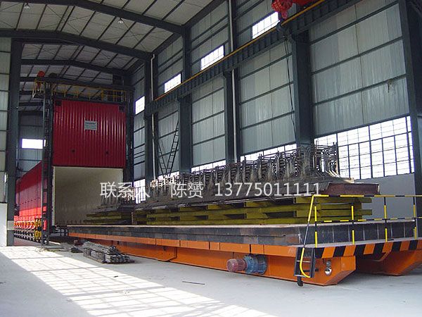 用途:大型台车式燃气炉是标准节能型周期式作业炉,超节能结构,节能效果65%。台车采用防撞击密封砖,炉门采用弹簧式压紧机构,自动密封台车和炉门,一体化连轨,不需基础安装,放在水平地面即可使用。主要用于高铬、高锰钢铸件、球墨铸铁、轧辊、钢球、45钢、不锈钢等淬火、退火、时效以及各种机械零件热处理之用。